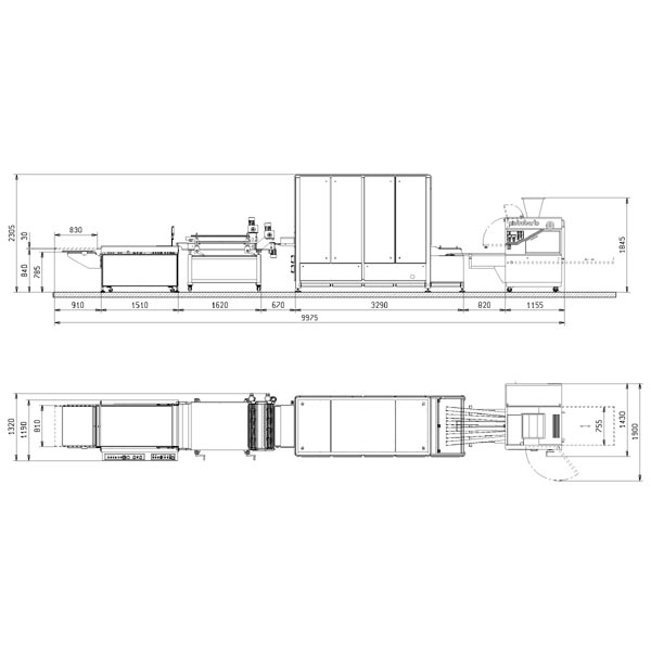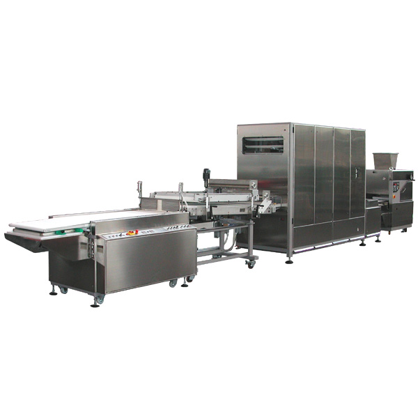 Он состоит из делитель- округлителя на 4-5- и 6 рядов барабанного типа, расстойного устройства ECP от 10 до 60 минут, станция формирвоания / прессовки / закрутки и автоматической системой для загрузки продуктов на противни.