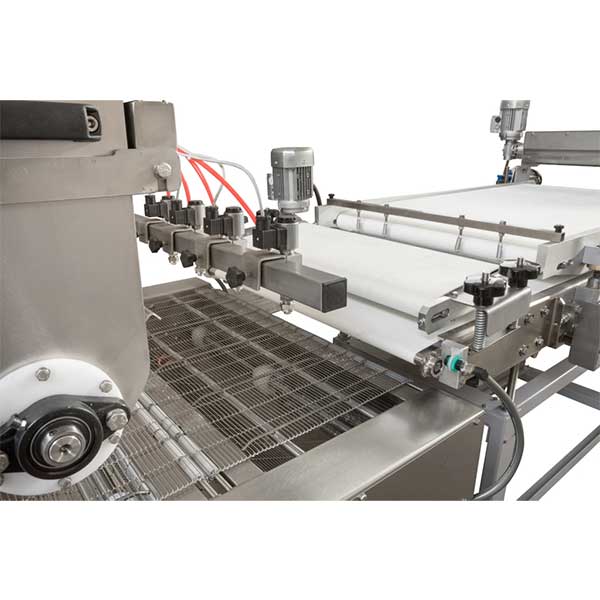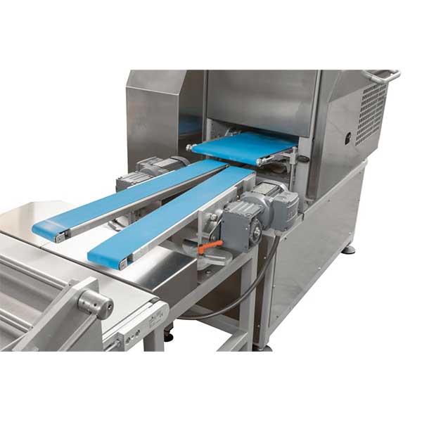 Линия состоит из двухрядного делитель - округлителя, способного производить до 2400 штук в час, который, благодаря устройству распределения рядов, поочередно передает тесто-заготовки на расстойный шкаф.